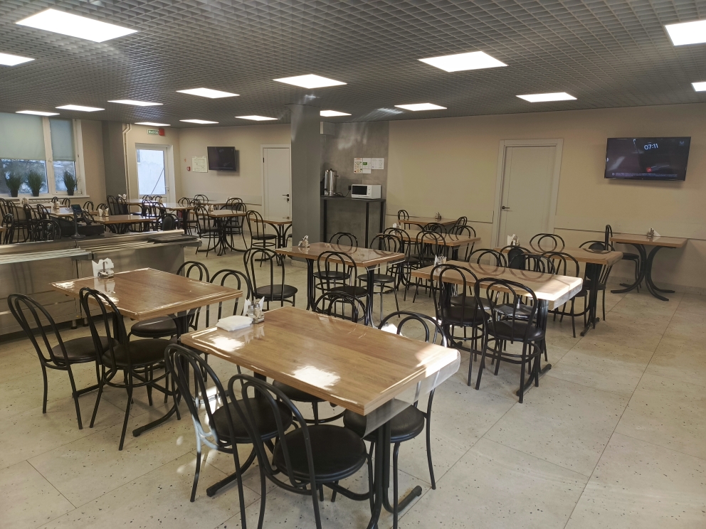 На территории Атлант-Парка работает столовая. График работы: понедельник-пятница с 08:00 до 16:00. Утром здесь предлагаются завтраки, а с 11:30 до завершения рабочего дня представлен широкий ассортимент первых и вторых блюд, гарниров, салатов, напитков и собственной выпечки. Можно покушать в зале, а также